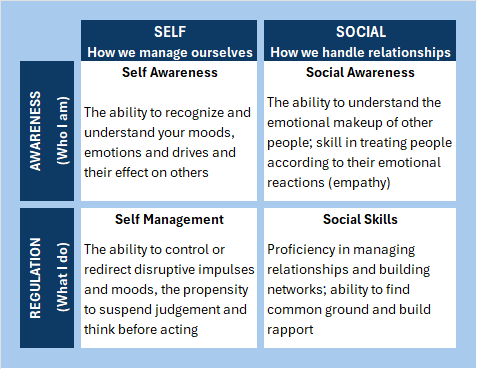 Recall the four aspects of Emotional Intelligence in Daniel Goleman’s model: